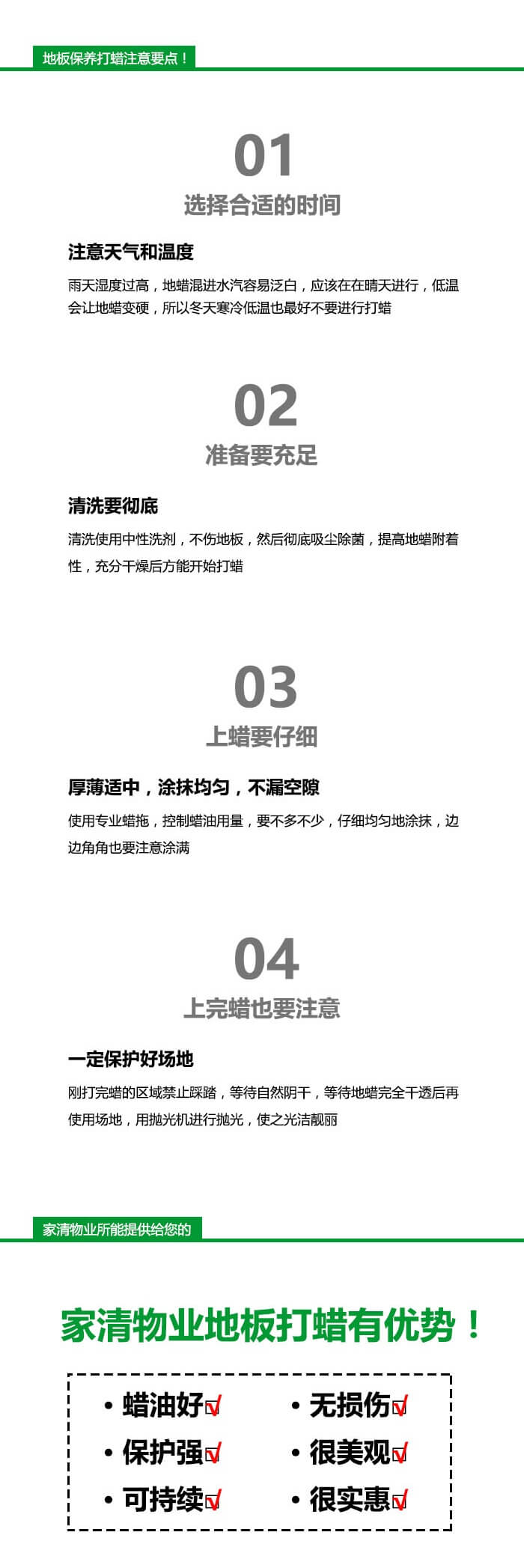 如果想要讓地板更光潔,就需要再對他進行打蠟。打蠟的時候,我們要先擦干凈地板,然后再上地板蠟,要均勻的涂抹好,這樣地板才會變得光滑透亮。